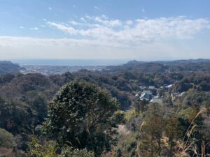 建長寺から山へ入り、山を登れば湘南の海が眺められます