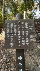 | 行程 | 本厚木駅7:40発乗車~煤ケ谷(すすがや)8:10下車~物見峠分岐~大山三峰山~不動尻~広沢寺~本厚木駅17:30予定 *危険箇所が多いため、時間をかけてゆっくり慎重に歩きます。 *距離約13㎞、コースタイム約7-8時間、標高差約900m) |