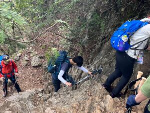 大岳山の山頂近くには、岩場・鎖場がございます。安全な登り方下やり方を指導いたします!